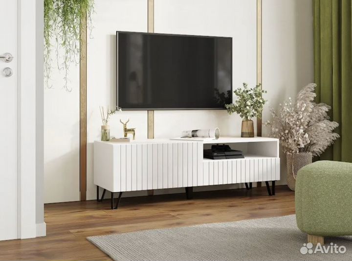 Тумба тв "Орегон" 1,4 м. Белый/ Белый Глянец