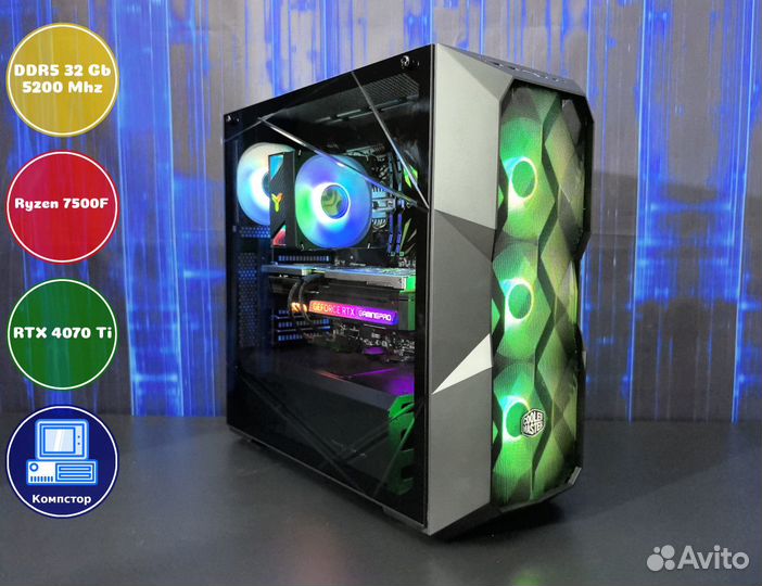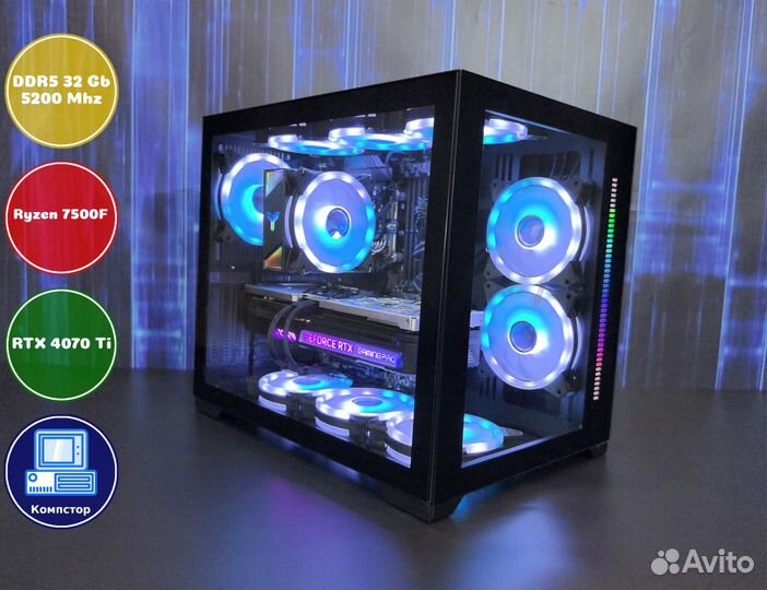 Мощный компьютер AMD7500F-RTX4070Ti-32DDR5-QPF-A620