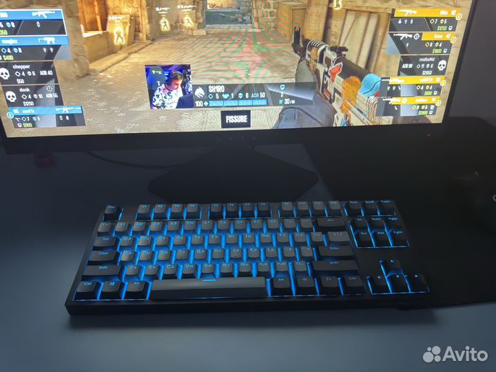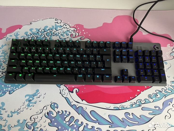 Настраиваемая RGB подсветка. Матовый пластик, потертое покрытие SoftTouch, целые металлические ножки. Длина кабеля 1.8 м.