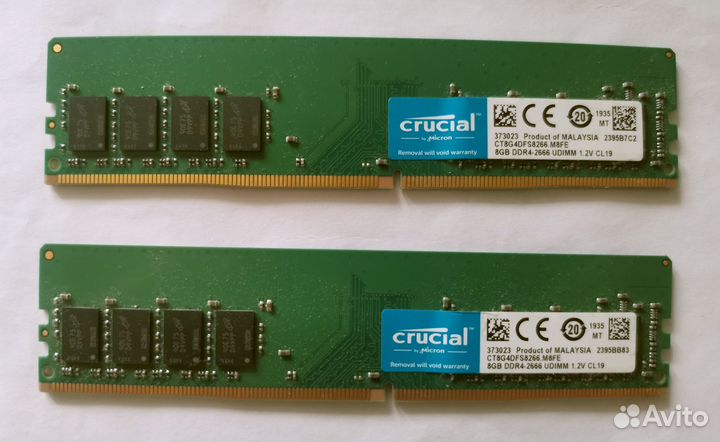 2 800 ₽Оперативная память ddr4Оперативная память ddr4Оперативная память Crusial ddr4 16 Гб 2666МГц 2, плашки по 8. Покупались в составе нового компа в 2020-м. Работают без нареканий, продаю в связи с апгрейдом компа.