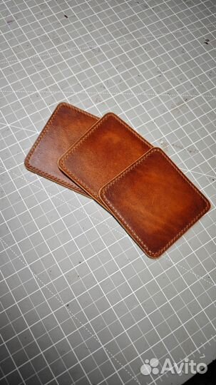 Набор из 3 подставок из натуральной кожи под бокал