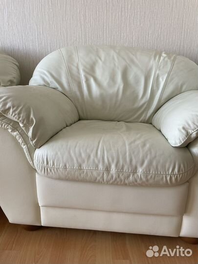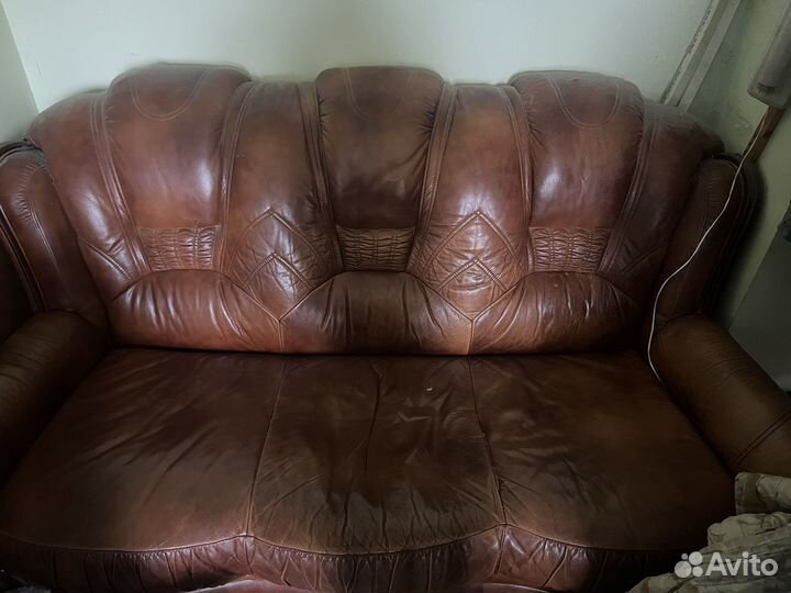 Кожаный диван и 2 кресла