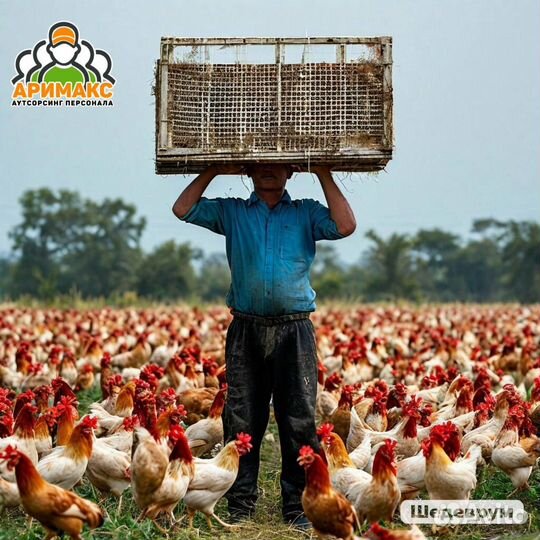Рабочий на отлов кур, вахтой
