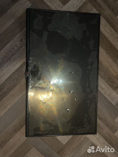 Треснул экран. А так все работает. Пульта нет. Есть коробка и документы.