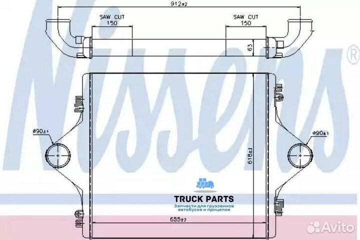 Nissens 96977 Интеркулер (655x618x63) алюминий/алюминий MAN (F2000)
