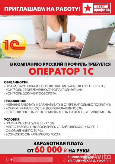 Оператор 1с оператор в Новосибирске