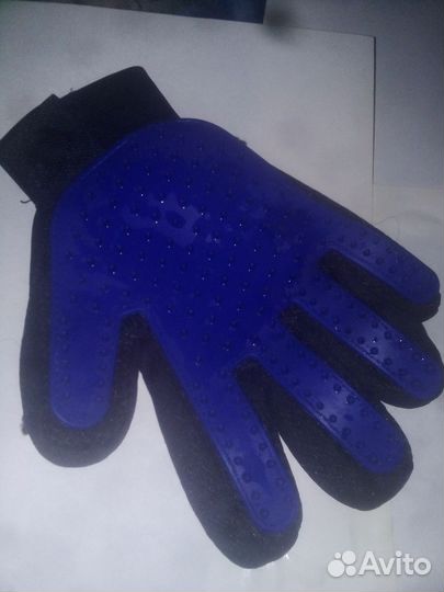 Перчатка для вычесывания шерсти животных синяя