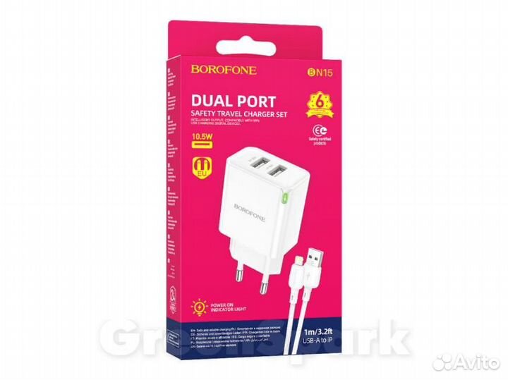 Сзу borofone BN15 Strong 2-USB/2.1A + Lightning к