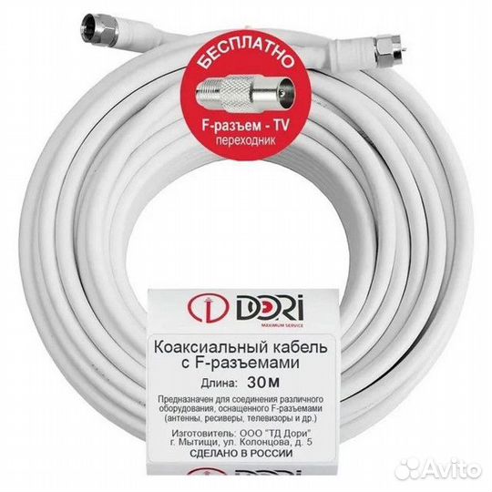 Кабель тв dori CCA 30м с F-коннекторами
