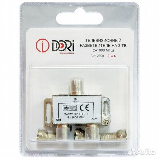 Делитель антенный dori на 2 тв с F-разъемами (сплиттер)