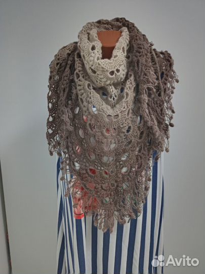 Шаль вязаная крючком, шарф шерстяной
