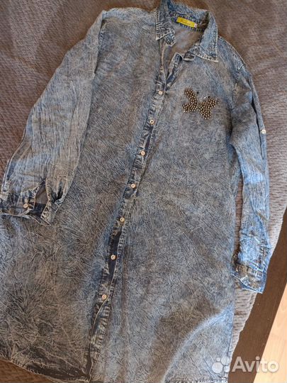 600 ₽Платье рубашка56-58Платье рубашка56-58продам платье из легкой джинсы, стало большое,носила очень мало. написано 60 но скорее на 56-58 размер.