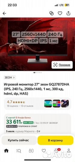 Игровой монитор зеон 2k 240hz