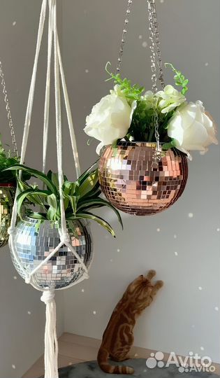 Кашпо из диско шара / кашпо из зеркальной мозаики
