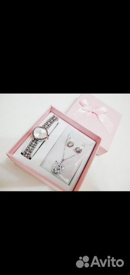 Набор: серьги/ часы наручные/ кулон с цепочкой/ с фианитами