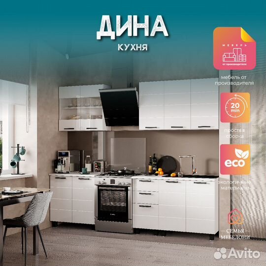 Кухня Дина 2 м белый глянец