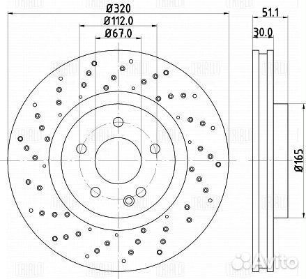 Диск торм. для а / м mercedes a (w176) (12) / cla (c117) (13) перед. d320 (перф. / окраш.) (df 1