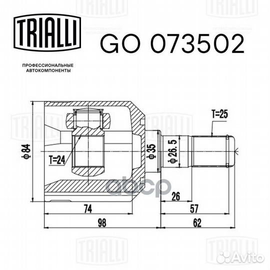 ШРУС для а/м Kia Cerato (04) 1.6i MT (внутр.) (GO