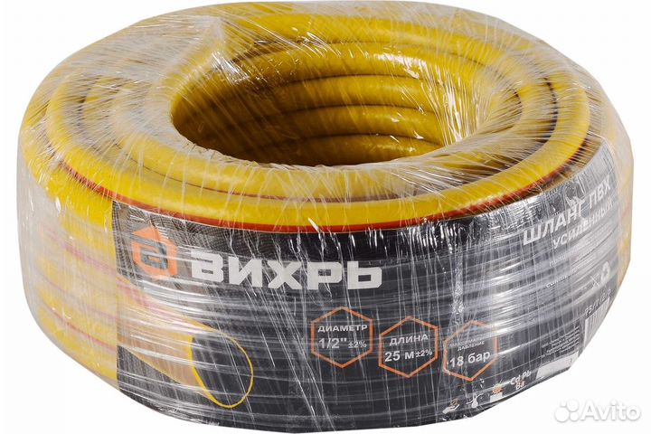 Шланг ПОЛИВOЧHЫЙ apмиpoвaнный жeлтый ПВX 1/2" 25 м. АKВАРEЛЬ/ Вихpь 73/7/2/6