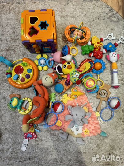 1 200 ₽Развивающие игрушки пакетом от 6 мес до 2 летРазвивающие игрушки пакетом от 6 мес до 2 летИгрушки пакетом, куб работает (благодаря кубу дочка села и встала), радио Чикко работает, пианино работает, утка двигается, песню поет и светится, машина-каталка-сортер музыка работает через раз (видимо где то контакты отошли).