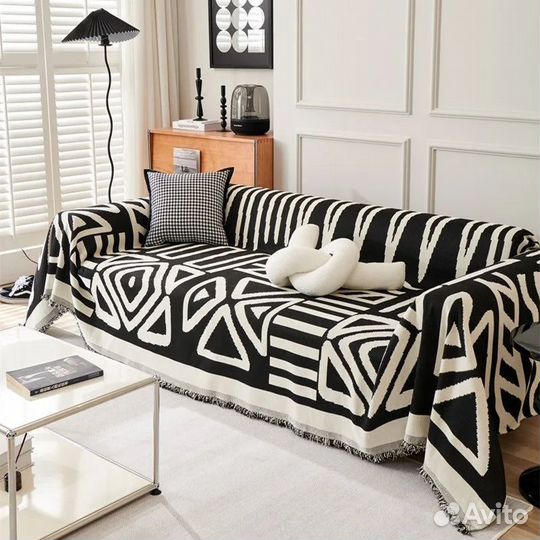 Плед покрывало bohemian soft black &white сканди