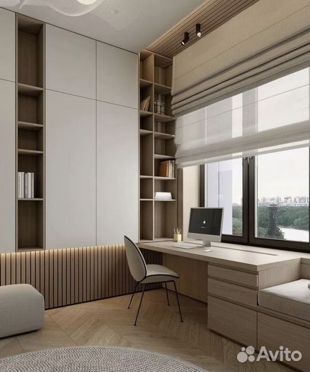 Рабочая зона у окна со шкафом
