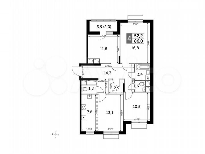 4-к. квартира, 86 м², 12/16 эт.