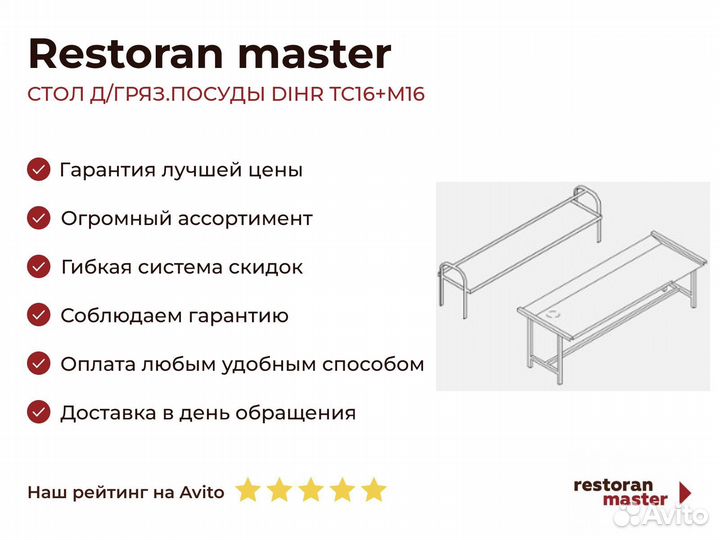 Стол Д/гряз.посуды dihr TC16+M16