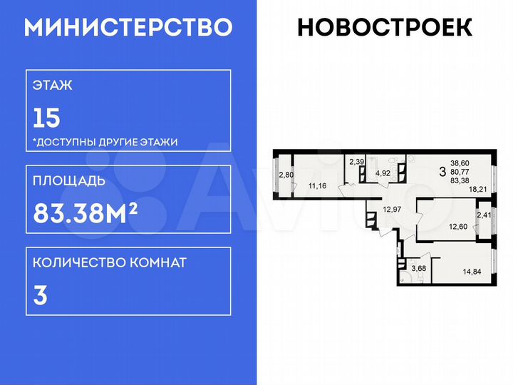 3-к. квартира, 83,4 м², 15/23 эт.