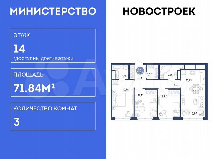 3-к. квартира, 71,8 м², 14/18 эт.