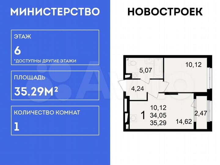 1-к. квартира, 35,3 м², 6/23 эт.