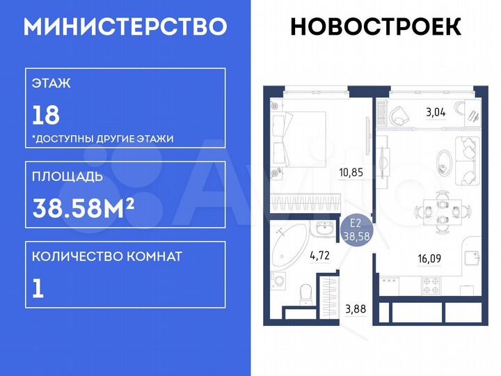 1-к. квартира, 38,6 м², 18/18 эт.