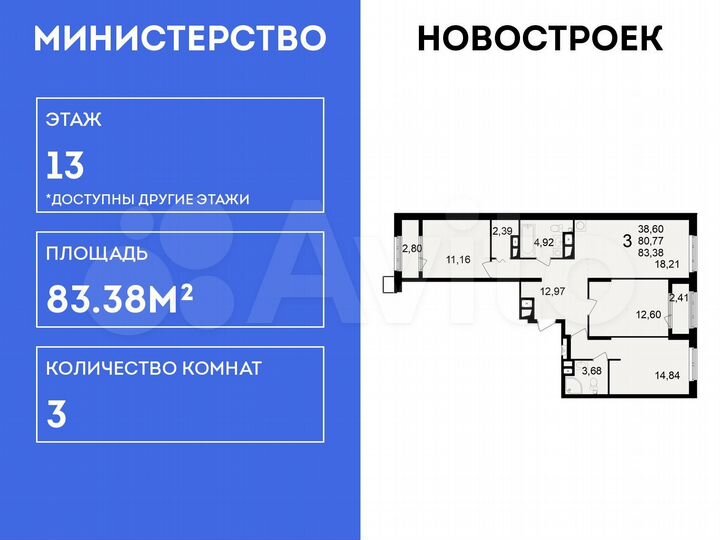 3-к. квартира, 83,4 м², 13/23 эт.