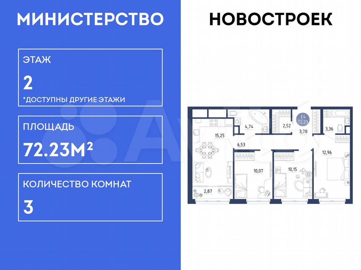 3-к. квартира, 72,2 м², 2/18 эт.