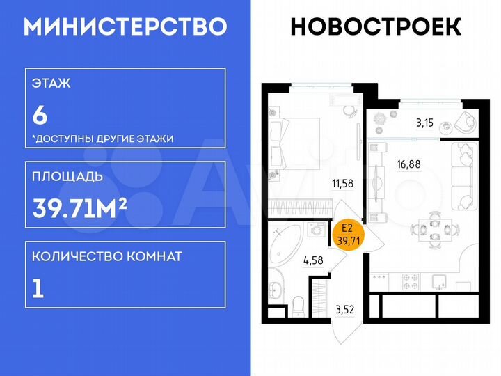 1-к. квартира, 39,7 м², 6/25 эт.