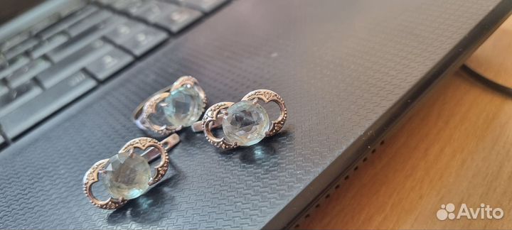 Серебряный комплект кольцо и серьги