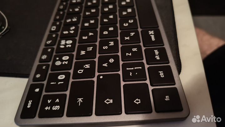 Подключение по Bluetooth, белая подсветка, цвет space gray. Русская и английская гравировка. Поддерживает до 3 устройств.