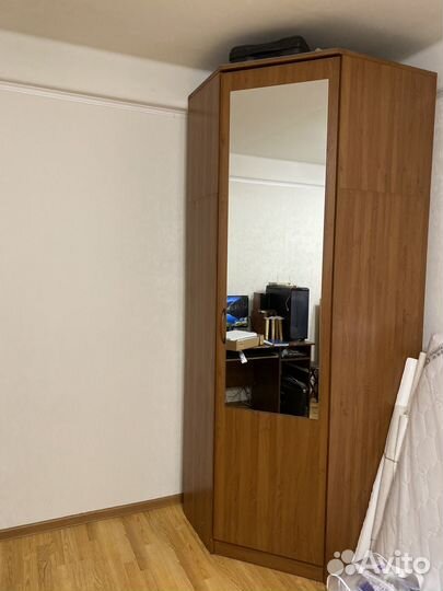 8 000 ₽Угловой шкаф буУгловой шкаф буУгловой вместительный шкаф б/у. 5 потолок и одна большая полка с верху. Есть есть куда повесить вещи. Зеркало целое без сколов и царапин. Дефектов на шкафу нет, все цело.