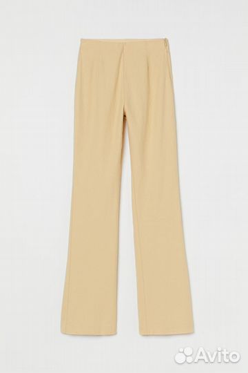 550 ₽Хлопковые брюки HMХлопковые брюки HMБрюки из хлопка с добавлением льна. Модель с высокой талией на скрытой резинке, с боковой застежкой-молнией и узкими штанинами, расширяющимися от колен.