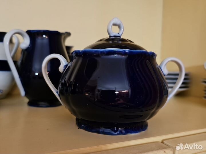 Сахарница лфз кобальт золотые цветы