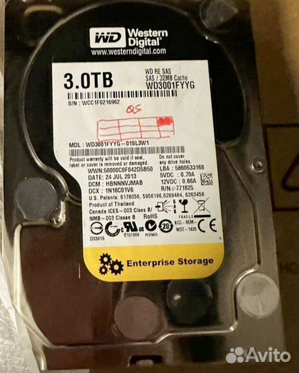 WD3001fyyg серверные диски 3 тб. SAS