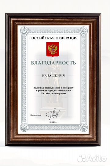 Благодарность 20х30 см