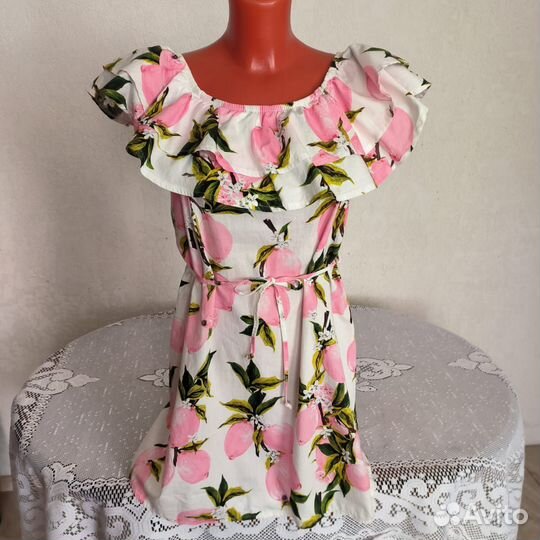 Джинсовое платье-сарафан с фруктами 42 44 размер