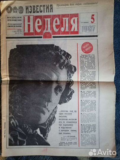 Газеты. Неделя. 1987г. Вечерняя Москва. Завтра