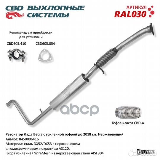 Резонатор Лада Веста 8450006416 Нерж сталь, с у