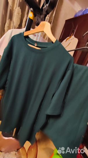 2 500 ₽Нежнейший костюмНежнейший костюмШикарный костюм. Сидит идеально. Смотреться очень нежно и красиво. Качество люкс. Покупала дорого. Размер единый. Рубашка свободного кроя. Штаны на резинке.