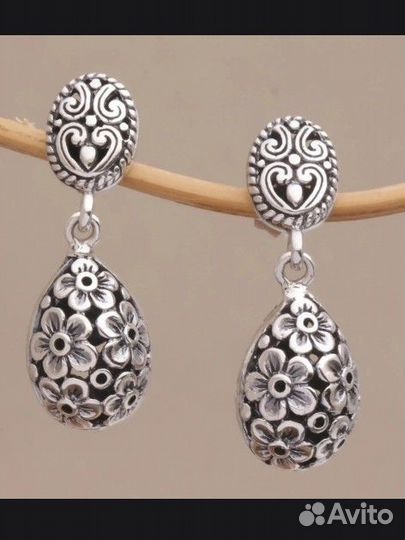 серебряные серьги.