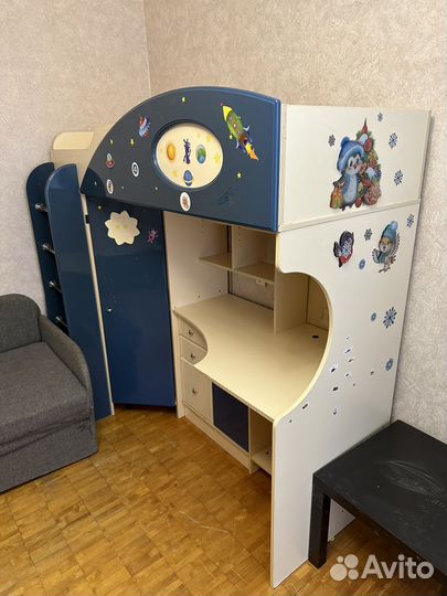 Детская кровать чердак со столом и шкафом бу