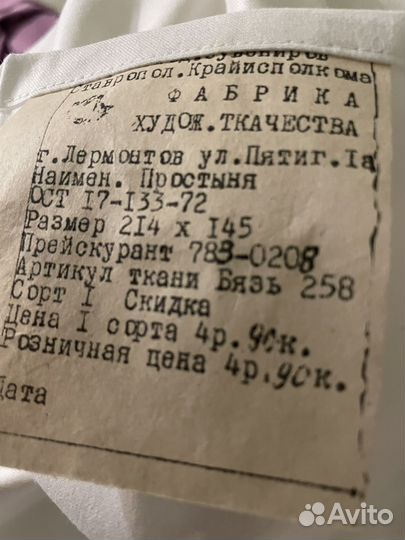 Простынь белая СССР.Бязь