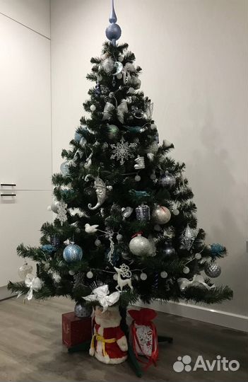 Небольшая красивая ёлочка и много украшений
